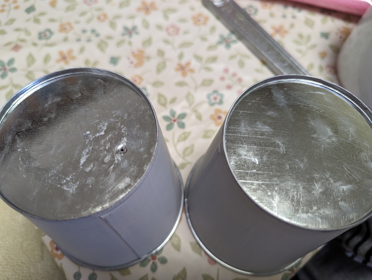 ブリキ缶に穴開けたかったんです。観葉植物を植え替えしようと思いまして、なんかよくわかんないけどおしゃれに見える系の英語書いてあるブリキ缶を用意しました。